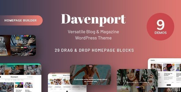 Davenport is a contemporary artistic responsive versatile WordPress Blog theme that may allow you to create wonderful private weblog, information portal or highly effective journal web site inside minutes.